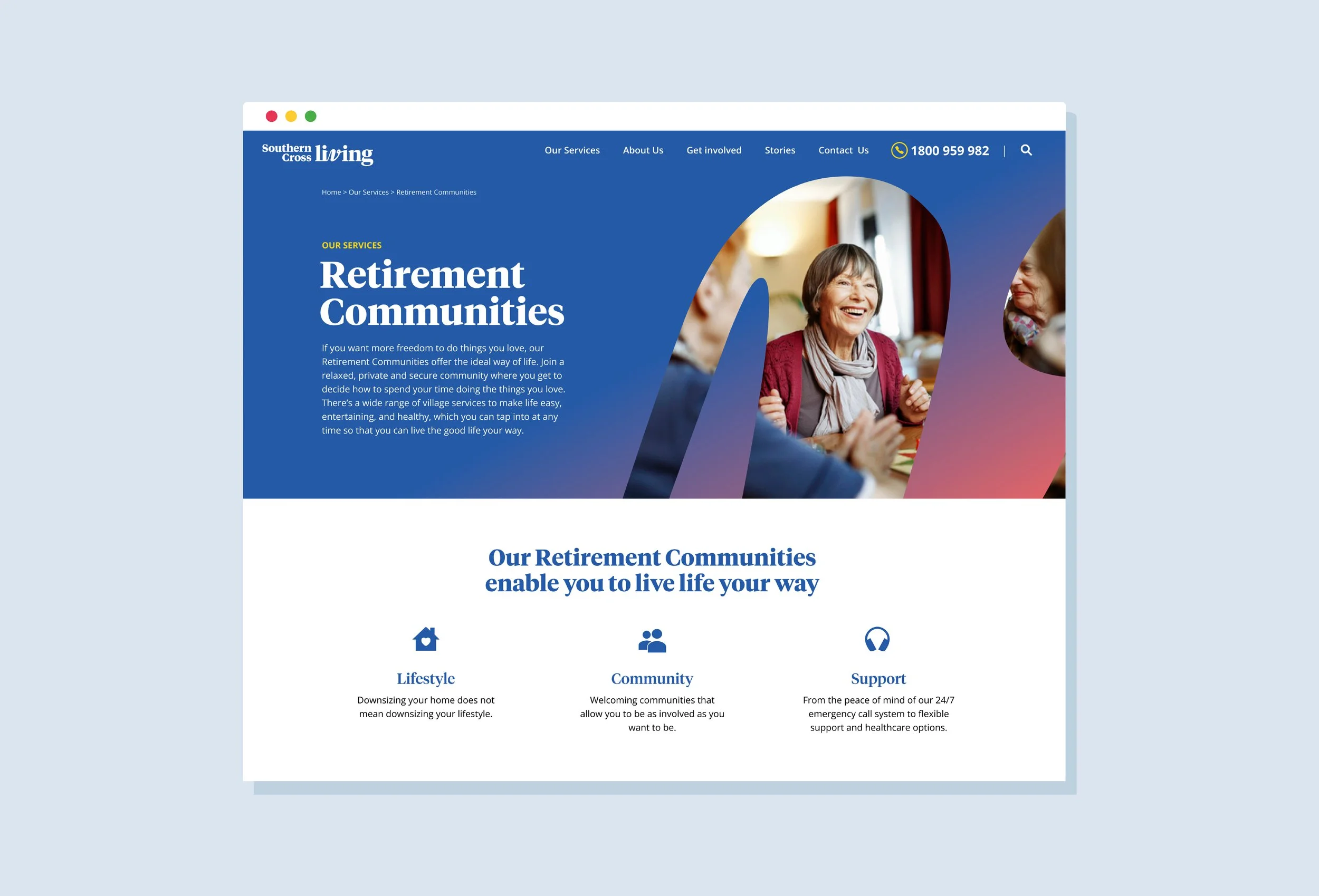 Southern Cross Care provides aged care services such as home care, retirement communities and residential aged care.